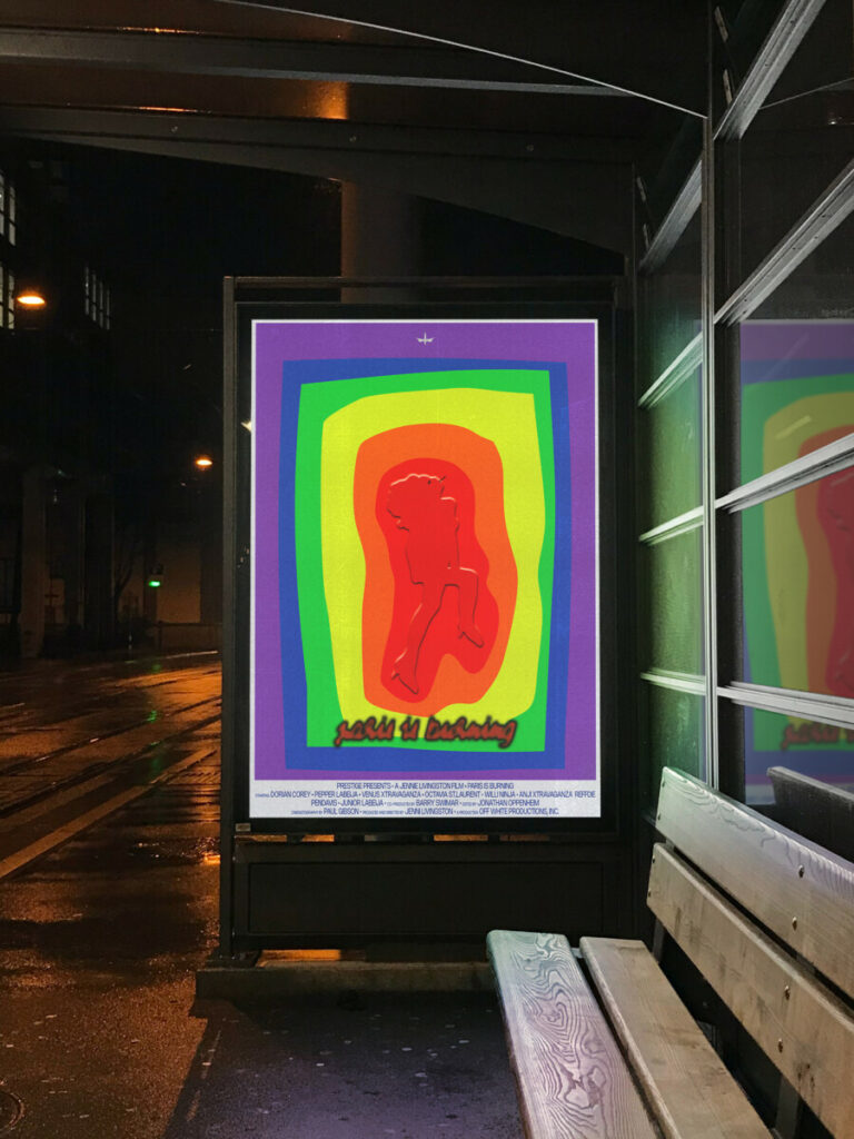 Affiche réalisée d’après le film documentaire « Paris is Burning » de Jennie Livingston (1990). Photomontage.